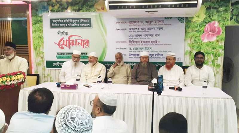 ইকরাম হোসেনের সঞ্চালনায় ও উপাধ্যক্ষ আব্দুল লতিফ এর সভাপতিত্বে অনুষ্ঠিত উক্ত সেমিনারে ড: মোহাম্মদ ইদ্রিস কর্তৃক উপস্থাপিত মুল প্রবন্ধের উপর প্রধান অতিথি হিসেবে আলোচনা পেশ করেন রাজশাহী বিশ্ববিদ্যালয়ের পদার্থ বিজ্ঞানের প্রফেসর ড: আবুল হাসেম। প্রধান আলোচক হিসেবে গুরুত্বপূর্ণ আলোচনা উপস্থাপন করেন বিশিষ্ট শিক্ষাবিদ ও ইসলামী আরবী বিশ্ববিদ্যালয়ের সিন্ডিকেট সদস্য অধ্যক্ষ জনাব ইকবাল হুসাইন।
