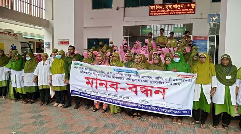 নার্সিং ও মিডওয়াইফারি অধিদপ্তরকে একিভূত না করার দাবিতে মানববন্ধন