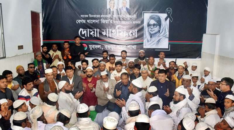 ৩ বারের সাবেক প্রধানমন্ত্রী ও বিএনপির চেয়ারপার্সন বেগম খালেদা জিয়া’র রুহের মাগফিরাত কামনায় বগুড়া শহর যুবদলের উদ্যোগে কোরআন খতম, দোয়া মাহফিল অনুষ্ঠিত হয়েছে।